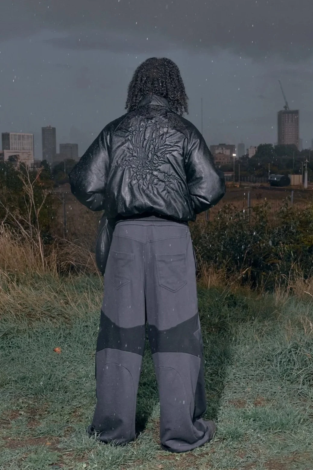 Signature 3d flower cut out pattern on knees. The model is 177m wearing a size L.