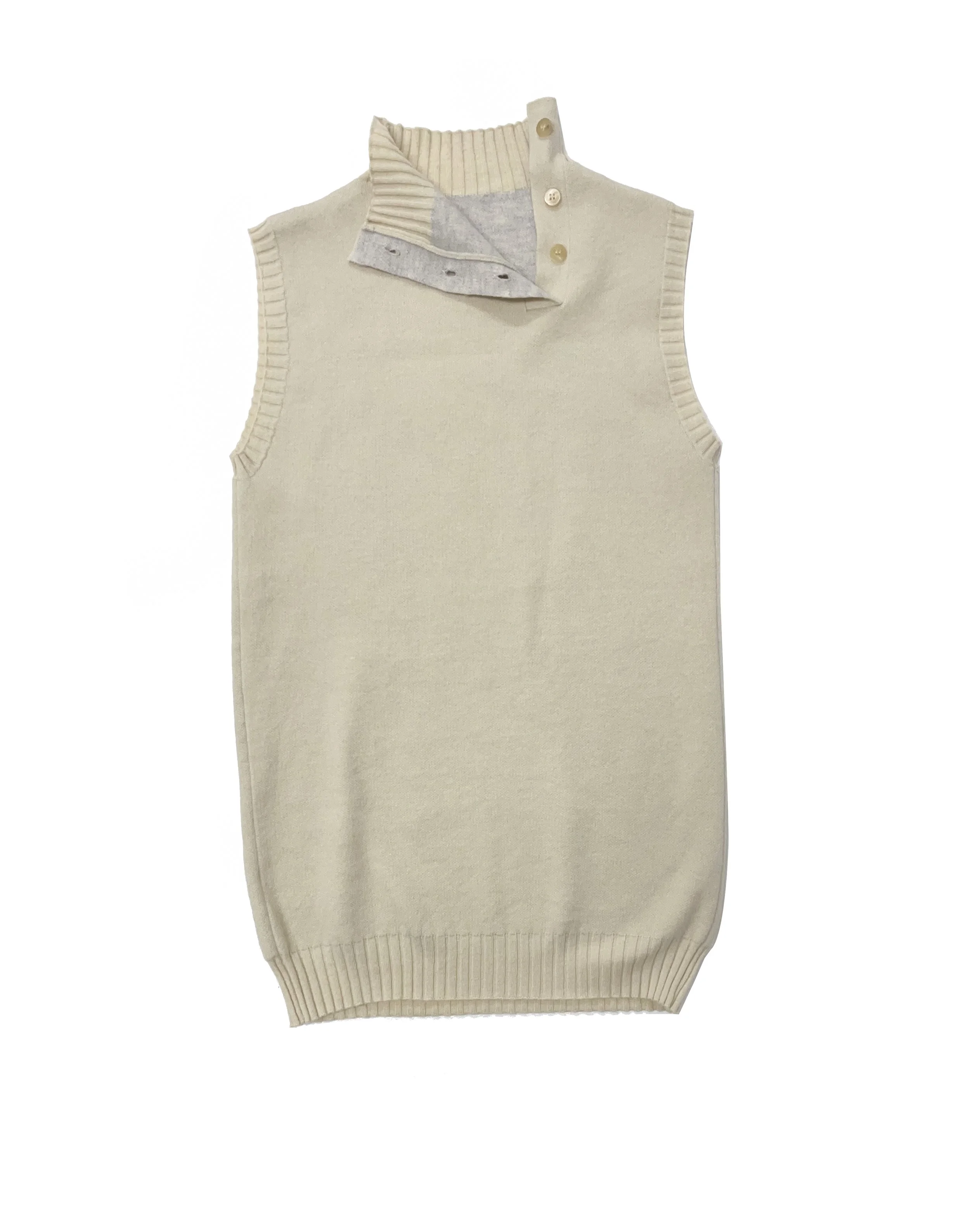 Buttons on the collar, with a double-way invisible zip on the front. Different ways to style with the fastenings.